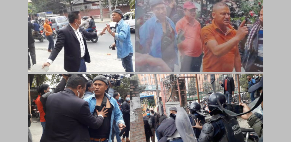 यही क्रममा बिहीबार दिउँसो अलिक फरक दृष्य सर्वोच्च प्राङ्गणमा देखियो । वकिलहरुको शान्तिपूर्ण आ न्दो ल नक क्रममा प्रहरी ह स्त क्षे प पनि भएको थियो । त्यस लगत्तै केही युवाहरु आए । र, आ न्दो ल न र त वारका वकिलहरुलाई गा ली ग लौ ज गरे ।